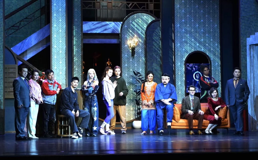 抽象的拱形门洞装饰着鱼骨纹的线条错落有致,深浅不一的马赛克方砖点缀其间,充满海派情调的老上海公寓楼里,“72国房客”一一登场亮相,这场停不下来的“国际闹剧”在观众的笑声中上演。11月13日晚,由上海滑稽剧团精心打磨的原创大戏《72国房客》拉开了演艺大世界·2025第十一届上海国际喜剧节大幕。