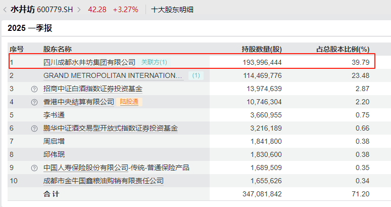 水井坊集团为A股上市公司四川水井坊股份有限公司(证券简称水井坊)的控股股东,直接持股1.94亿股,持股比例为39.79%。水井坊为国内高端白酒品牌,核心产品包括水井坊菁翠、水井坊典藏、水井坊井台、水井坊臻酿八号等。该公司于1996年在上海证券交易所上市,股票代码“600779”。