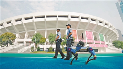 广州在天河体育中心等赛事重点区域部署警用机械狗,与巡逻警力实现“人机协同”的巡逻模式。